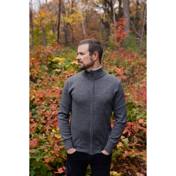 Full Zip 100% Baby Alpaca Sweater: Dark Grey