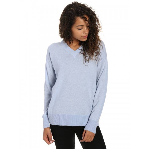 Zainuno Moizni Women's 100% Cashmere Deep V-Neck Sweater Sky Blue